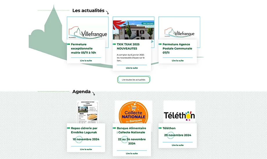 Ici, nous vous présentons la variété et la qualité que permet le système Elgarweb pour le site de votre commune.Le projet Elgarweb propose un socle commun de fonctionnalités, et chaque commune est ensuite libre de mettre son site aux couleurs de sa mairie en fonction de sa charte graphique.